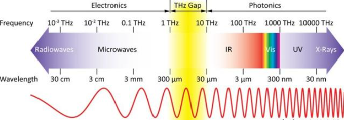 太赫茲波(Terahertz wave,簡稱THz波)是一種頻率位於0.1THz到10THz之間的電磁波,波長約介於3毫米到30微米之間,處於微波與紅外線之間的頻段,被稱為電磁波譜的「太赫茲空隙」。